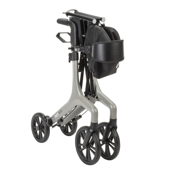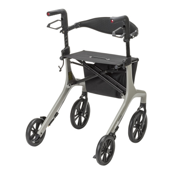 - Ultra-Lightweight Design with sleek aluminum frame weighs 14.5 lbs. Seamless frame has no visible welds and three sleek color options to choose from. Concealed brake cable for improved durability and safety. Adjustable handle height 31.5″ – 37.3″. Backrest is adjustable and extends up 37.6″ for premium lumbar support. Large 10″ front wheels provide optimal stability and rolling comfort. Durable and comfortable seat for rest on the go. Easy side-to-side folding for storage and transport. Removable storage bag to easily carry personal items.